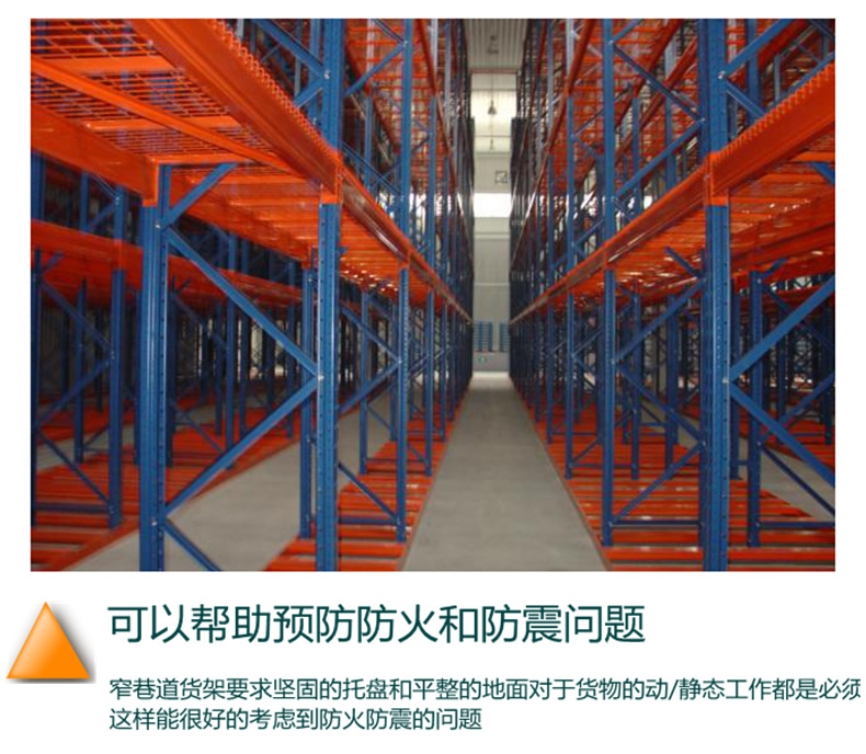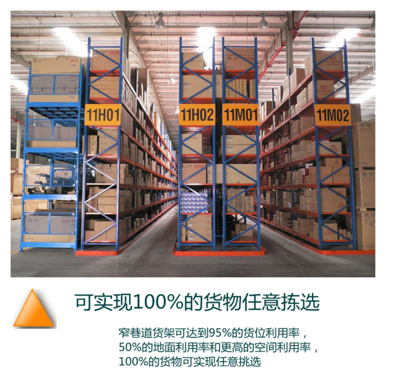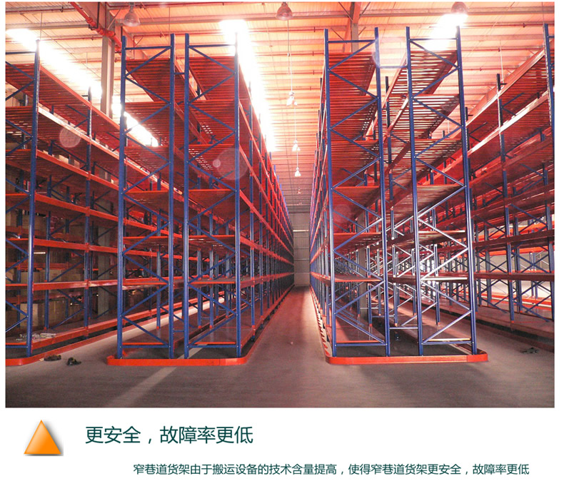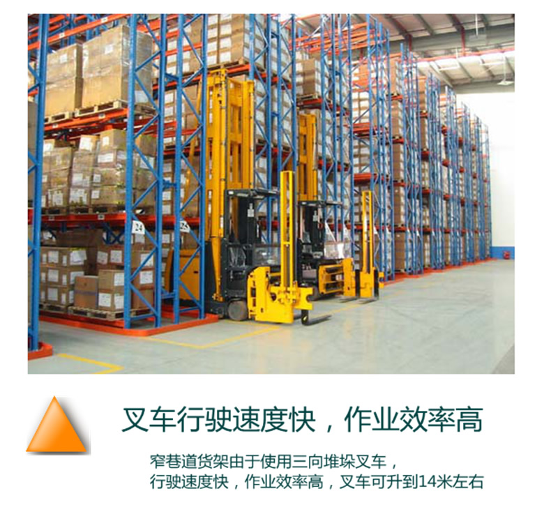 窄巷式托盤(pán)貨架該系統(tǒng)存儲(chǔ)密度極高,但仍能對(duì)所有托盤(pán)進(jìn)行單塊存取,需要特殊設(shè)計(jì)的叉車(chē)或電控堆垛起重機(jī)作業(yè),因其依通道而行而不作轉(zhuǎn)向,存放托盤(pán)以轉(zhuǎn)塔或貨叉需要左右移動(dòng),故其通道僅較搬運(yùn)機(jī)械稍寬。由于巷道貨架較一般貨架高,因此必須有極強(qiáng)的剛度、精密的公差配合的安裝。